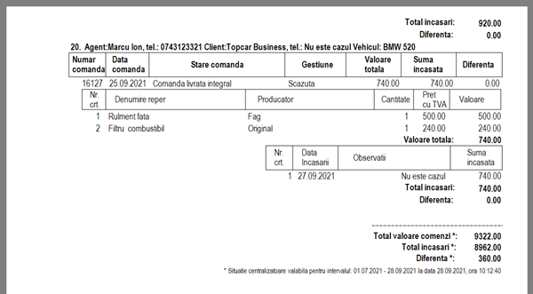Situația vânzărilor și a încasărilor este într-o dinamică continuă. Așadar, situația centralizatoare obținută este valabilă la momentul întocmirii. Nu reconstituie situația pentru un anumit moment dat.